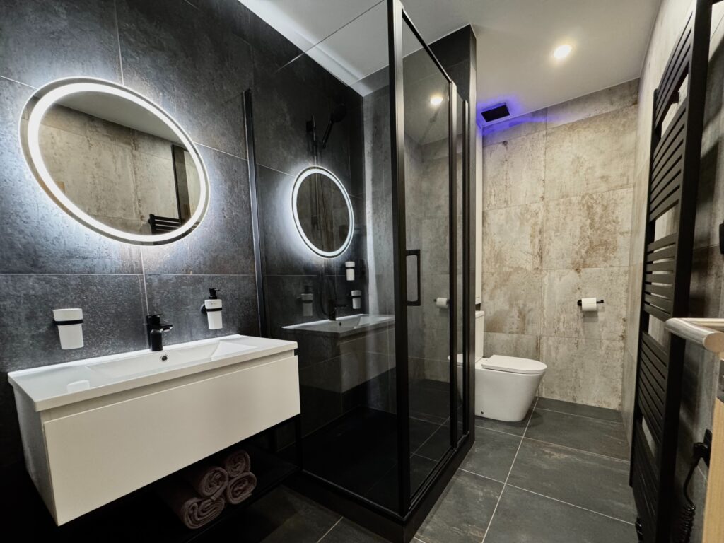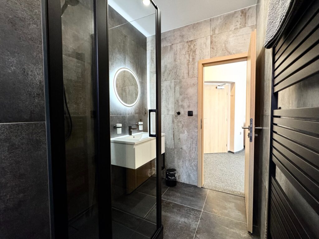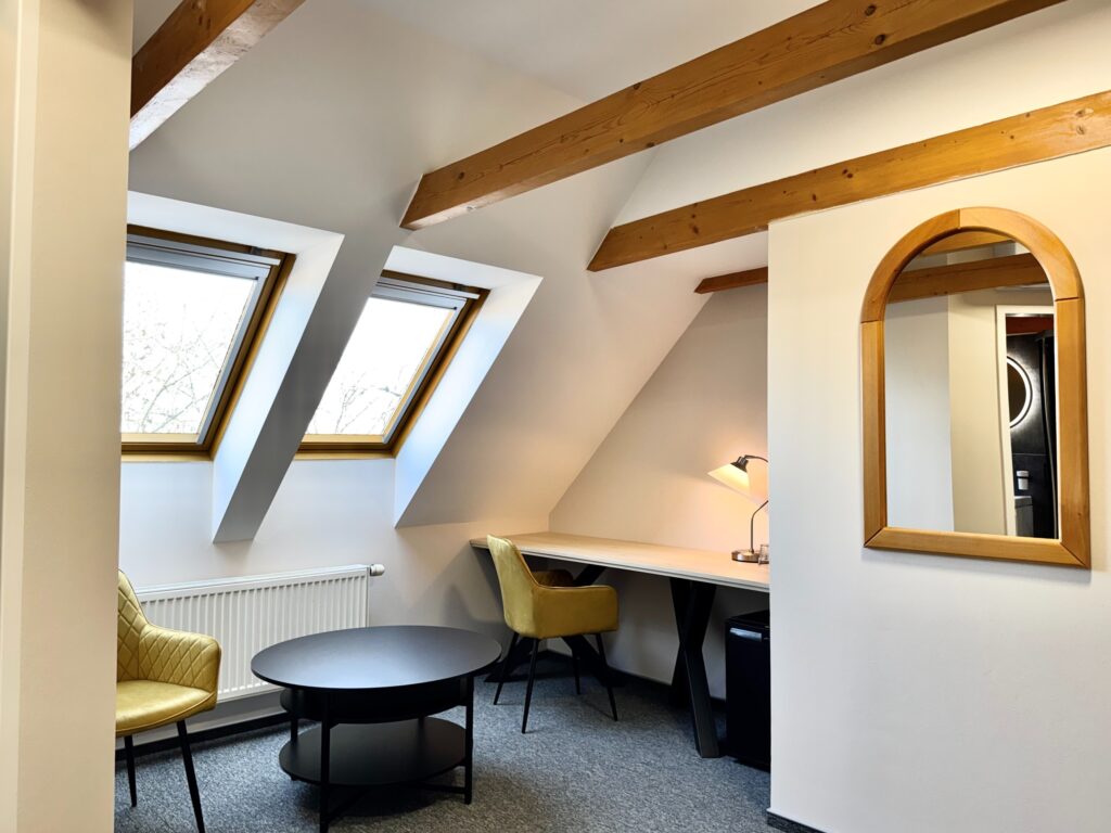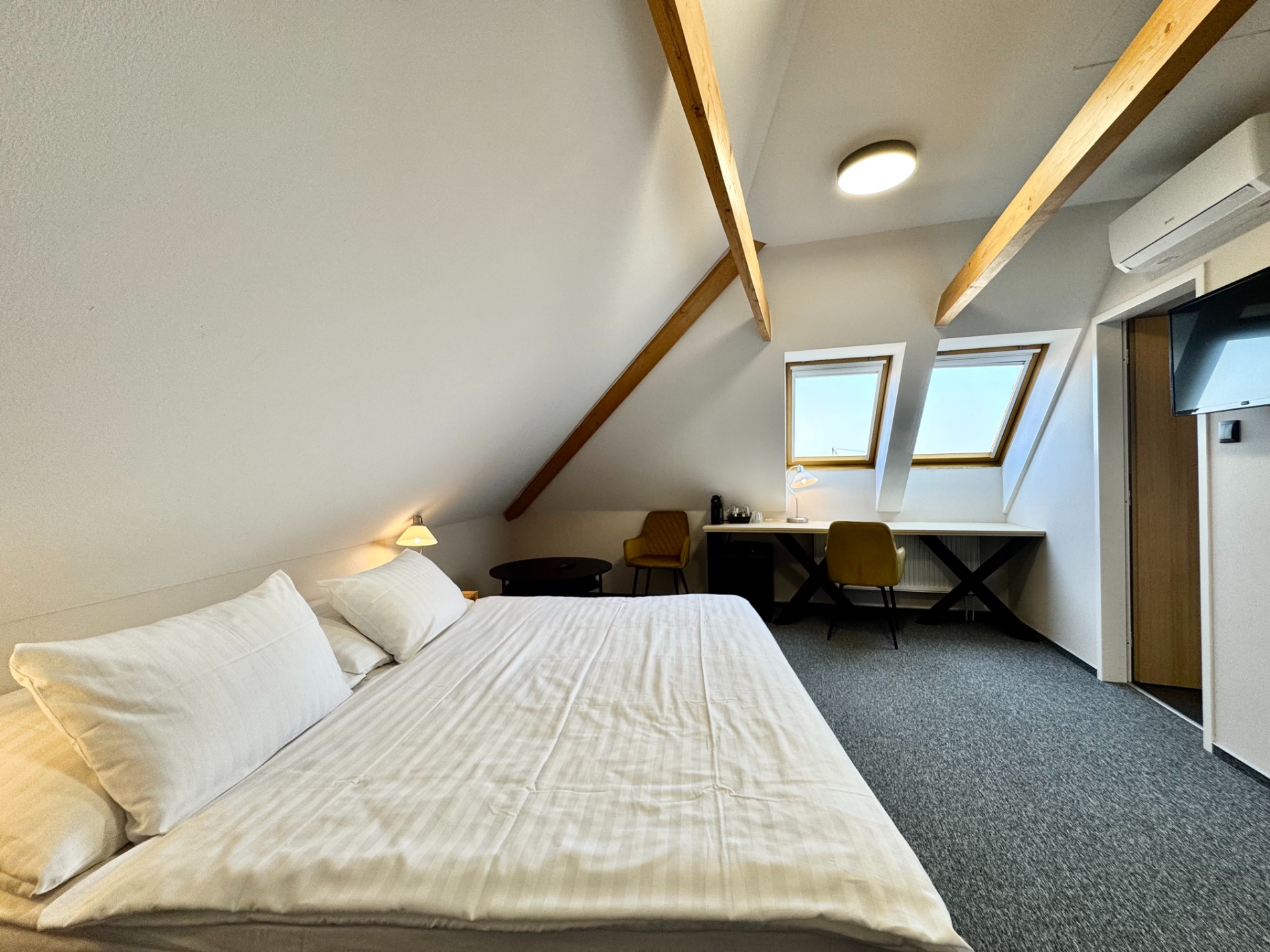 Útulný dvoulůžkový pokoj s variabilními postelemi, smart TV, ledničkou a kávovarem.